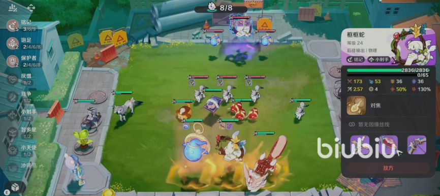 当框框蛇与目标之间的距离超过两格时,能够触发额外的远程增益效果,使其在远距离交战中更具优势。此外,羁绊系统的激活对其强度影响极大——当达到8羁绊时,不仅攻击力提升40%,还能获得额外100%的属性加成。在技能使用方面,“对焦”是其核心技能,释放后会锁定距离最近的敌方单位,并发射能量弹造成物理伤害。更重要的是,在完成此次攻击后,框框蛇将进入强化状态。
