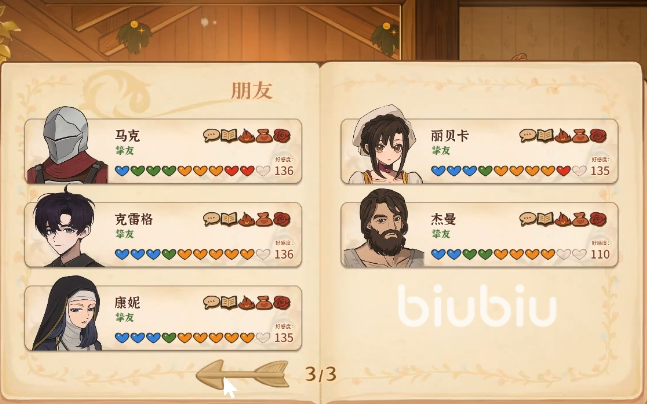 除了针对个别角色的互动外,游戏中还存在一些共通的前提任务,例如“绘画的诀窍”与“空中花园”等关键节点。完成这些任务后,才能开启与更多异性角色相遇的机会。除常规对话与请教之外,玩家还可依据对方喜好,在特定地点发起邀约,进一步拉近感情距离。为确保结婚成功,需始终保持目标角色的好感度在所有异性中位居首位,并稳定维持在200以上。