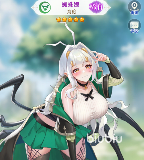 第二位重点角色为风系五星守卫——蜘蛛娘海伦。她在游戏中经营着一家名为蛛丝防具店的店铺,虽接待众多访客却始终等待真正命中注定之人。直到主角出现,她的命运才正式展开。海伦拥有“蜘蛛军团”与“蜘蛛体质”两项核心技能,能够在战斗中为队伍提供稳定的控制与减伤效果,擅长施加缠绕状态并提升团队生存能力,是阵容中不可或缺的前排防护角色。
