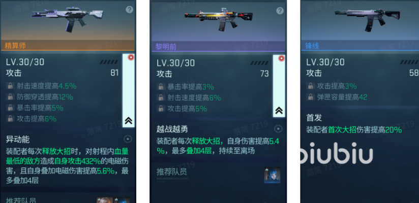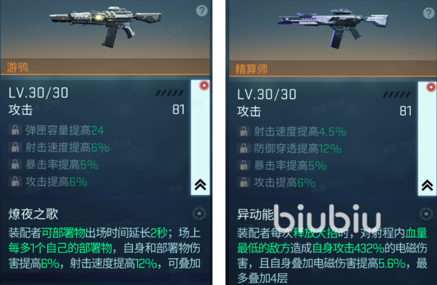 在众多SSR级武器中,游鸮与精算师表现尤为突出。游鸮具备“燎夜之歌”被动技能,装备后可使部署单位的出场时间延长2秒,并额外增加一次部署机会;同时,自身及部署物的伤害提升6%,射击速度提升12%,该状态支持多层叠加。另一款SSR武器精算师则拥有“异动能”特性,角色每次释放终极技能时,会自动对范围内血量最低的敌人造成相当于432%电磁攻击力的伤害,并为自己叠加一层电磁增益,每层提升5.6%电磁伤害,最多叠加四层。随着更多配件的解锁,这两把武器的实战效能将进一步放大。