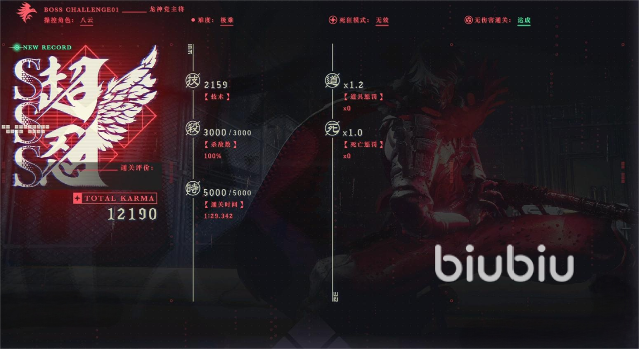 以龙神党主将为例,该BOSS是典型的人型BOSS,非常擅长快慢刀攻击,随着难度提升攻击的欲望会非常高,大家头上的警示按钮以及BOSS的红光显示会变得非常的频繁,这个时候需要使用撤步或者弹反以及翻转技能轮流切换对应大小招数,随着玩家的连击次数越多,攻击击败敌人的速度也会越快,最后获取的评分也就是越高,大家在达到超忍SSS的评价就算是完全攻略这个BOSS了。