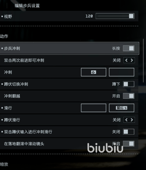 有关操作大家可以在编辑步兵设置里操纵,这里有一些功能都是可以开启的,比如步兵冲刺和滑行种各项细致的操作按钮,小伙伴们根据个人习惯进行设置即可。