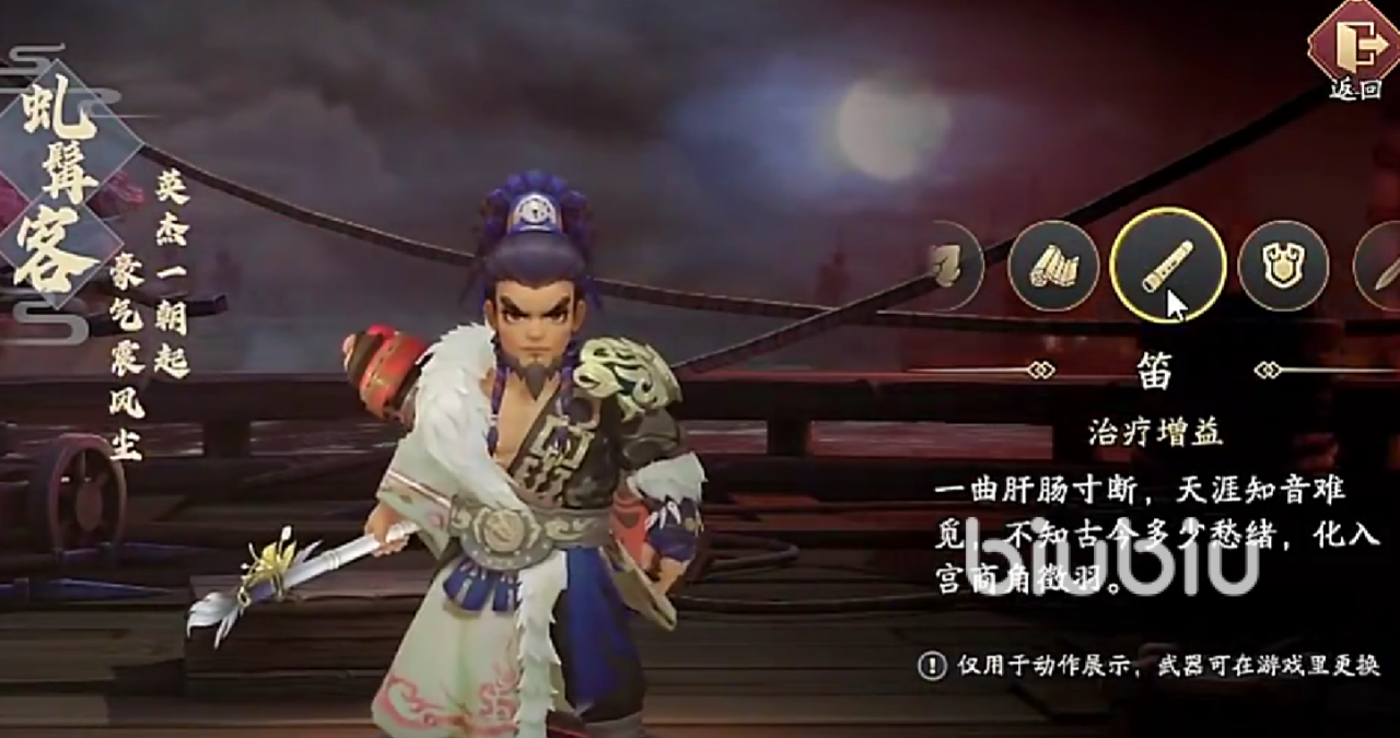 辅助类武器包括笛子、卷轴以及羽扇。其中,笛子是专注于治疗增益的核心装备,不仅能提供稳定的法术输出,还能显著增强团队的恢复能力。其必杀技需消耗3点怒气,可随机恢复多个己方单位的生命值,并允许玩家指定一个目标,使其获得更高等级的增益效果。生命回复量基于持有者自身最大生命值进行计算,且在释放大招时,有一定几率提升目标角色的物理防御属性。
