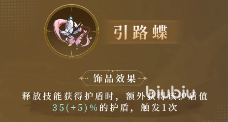 搭配特殊饰品“引路蝶”后,花梨在使用护盾类技能时,额外获得35%的护盾加成,该效果仅限触发一次,但可在关键时刻扭转战局。