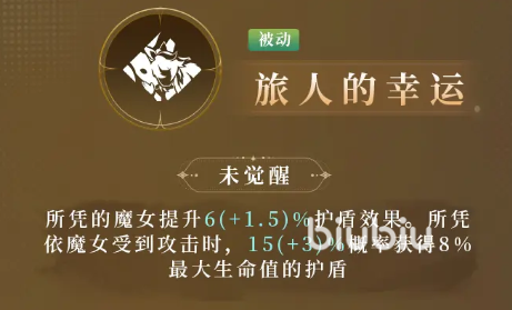 她的被动技能“旅人的幸运”赋予了战术选择空间:战斗开始时,花梨可选定一名队友作为“所凭魔女”,使其基础护盾效果提升6%。当该目标受到攻击时,有15%概率为其添加一层相当于花梨最大生命8%的护盾,增强了特定核心单位的续航能力。