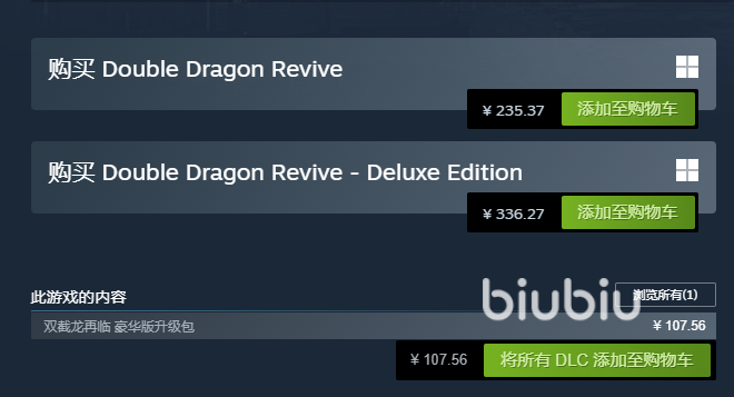 目前该游戏有两个版本,分别是标准版235.37元,包含了基础的游戏内容。另一版就是豪华版336.27元,包含了标准版,并且额外多了一些内容,比如限定游戏双截龙躲避球。