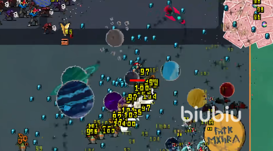 ④、天体助推器让星球和火箭环绕你运行,其伤害值与还持有的金幣数量挂钩,越富有就越强大。