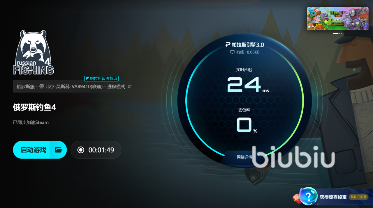 俄罗斯钓鱼4的魅力,不在于钓到多少鱼,而在于你能真实置身自然、进入一个会呼吸的世界。闪退和黑屏打断的是这种沉浸感,而稳定的网络连接才能让你真正走进这片水域。使用biubiu加速器不是为了让你钓得更快,而是为了确保你能顺利开启这段旅途,让每一次抛竿都发生在真实而流畅的世界里。