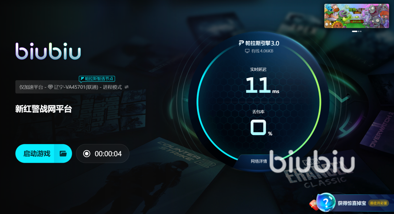 支撑这一效果的是biubiu的帕拉斯引擎三点零。启动红警的瞬间,引擎会自动探测当下链路状况,为数据拉出一条直连通路,减少绕行带来的延迟与回退。一旦节点出现抖动,毫秒级完成备用路径切换,连接不断、传输不掉。这使这类老牌即时战略在启动与加载阶段同样保持稳态,黑屏与加载失败的触发窗口被显著收窄。