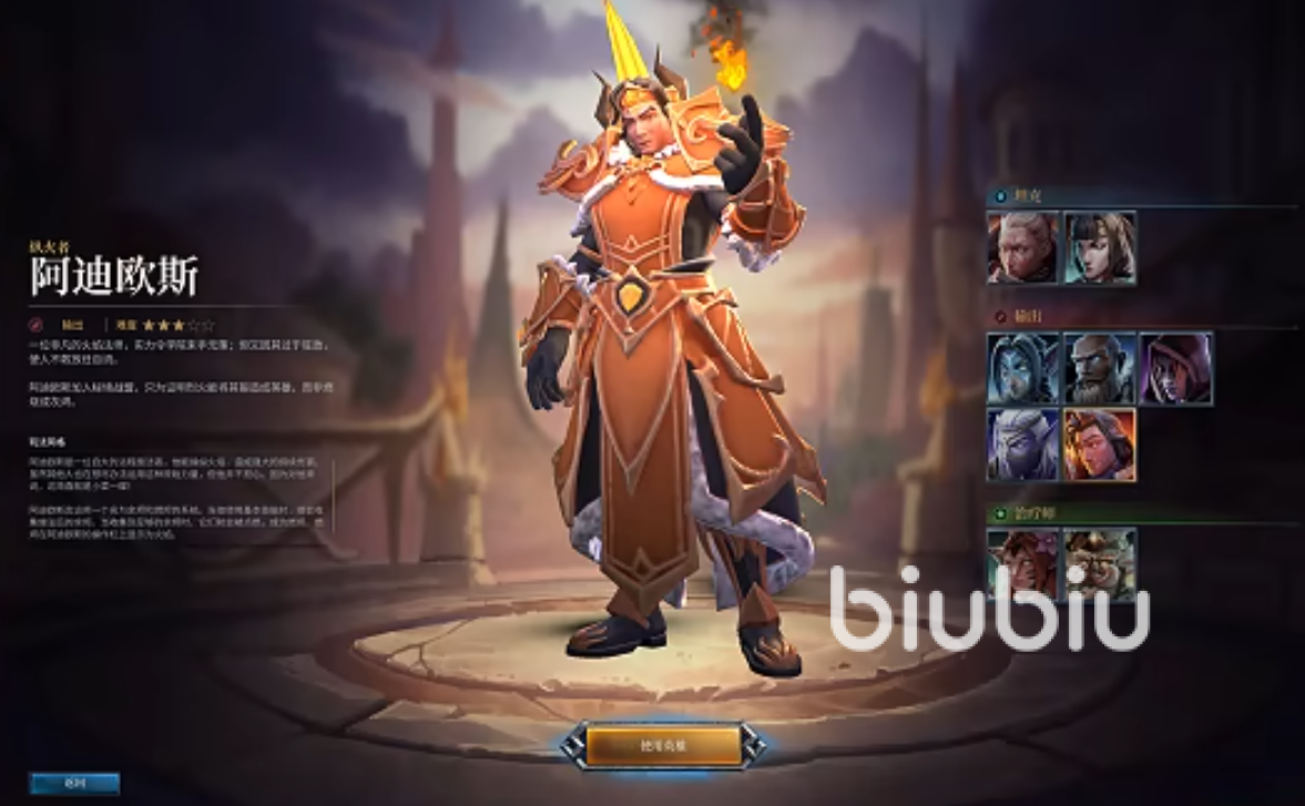 纵火者 阿迪欧斯:一位精通火焰法术的远程术士,拥有独特的“燃尽”系统。他的玩法是通过 “滩涛烈焰” 等技能给敌人挂上持续伤害效果,然后引爆这些效果造成爆发性伤害。他还可以召唤火焰宠物协助作战,并具备一定的控场能力,特效华丽,玩法丰富。