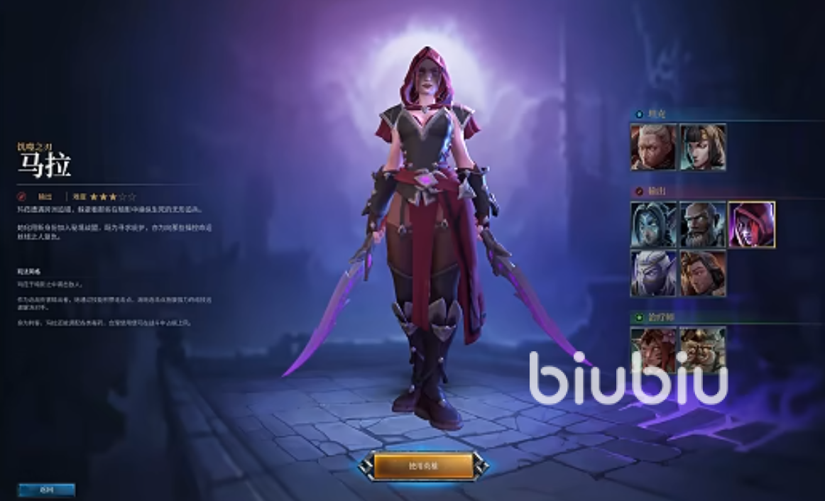 机士之刃 马拉:一位典型的近战刺客,追求极致的爆发伤害。她的玩法是通过 “背刺” 积攒连击点,然后使用 “女王之牙” 等终结技进行爆发。“幽影” 技能允许她进入潜行状态,迂回至敌人身后发动致命一击,操作难度较高,但秒杀精英怪的成就感极强。