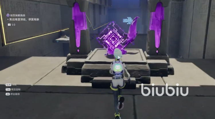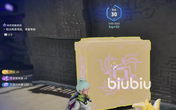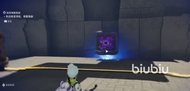以“腾云驾雾”地宫为例,进入主区域前需激活大门的通电装置。具体操作是利用紫色电箱推动左侧的普通木箱,使其连接电路。只有当电箱正确放置于远端供电区时,电流才能顺利通过。第一个宝箱就位于该区域附近。若电箱未对准位置,电路将无法导通,因此需反复调整直至线路完整接通,大门随即开启。进入后向前进发,在左侧平台攀爬柱子,踏上石块前行至紫色能量球旁,通过交互为系统供能,等待移动平台靠近后跳跃上去,随其前行即可抵达下一区域。