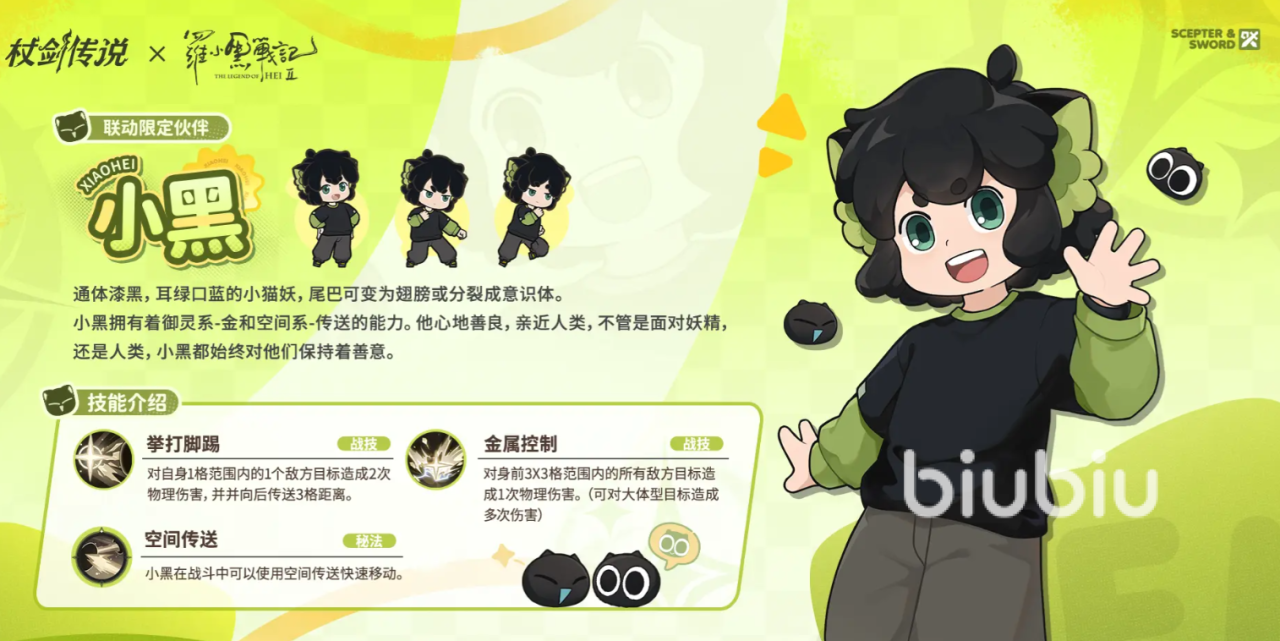 《杖剑传说》与《罗小黑战记2》的联动将于10月30日正式上线,包含四位特色鲜明的角色、多样化的福利活动以及独家剧情内容,诚邀各位冒险者届时进入游戏,共同见证这场跨越世界的相遇。