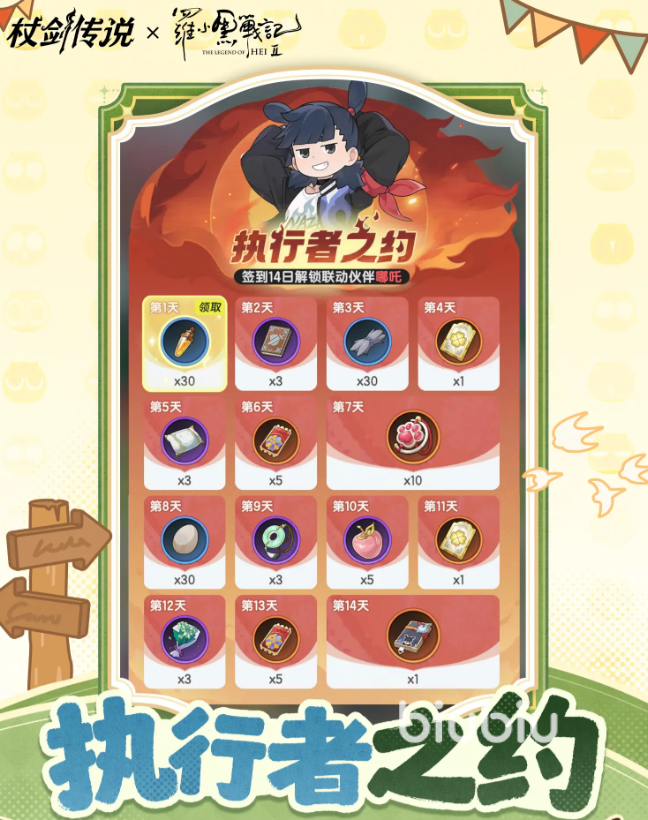 活动期间,玩家每日登录完成签到即可领取对应道具奖励,累计签到满14天更可直接获得联动角色哪吒。若希望获取更多伙伴,可通过参与指定任务获取转盘券,在“喵喵转盘”中进行抽取,每轮抽奖均设有保底机制,确保至少获得一位联动角色。