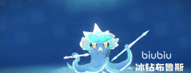接下来是冰钻布鲁斯,这款炫彩精灵堪称视觉焦点。通体以炫彩蓝色为主调,融合白色点缀,整体呈现出晶莹剔透的质感,比普通版本更具吸引力。它的骑乘姿势也非常特别,玩家需要坐在它的头顶上前行。陆地行走时速度较缓,甚至不如角色步行快,但一旦进入水域,其游动速度显著提升,展现出出色的水中机动性。