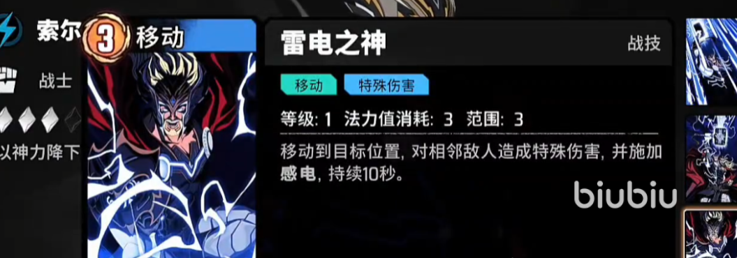 首推阵容为雷神索尔为核心的普攻爆发体系。该阵容以高频普通攻击为主要输出手段,整体伤害集中且爆发可观。雷神自身拥有强化普攻的被动技能,并能附加感电状态,使敌人受到的伤害逐步叠加,为团队创造更高的输出环境。“垂于于下”技能可在对单或对群时提供额外打击效果,显著提升清图效率。