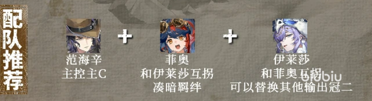 当范海辛确立为核心输出后,队伍整体的战场压制力将大幅提升。而搭配菲奥与伊莱莎的优势在于,三者中后两者均为暗属性角色,可触发属性共鸣,为全队提供额外战斗增益。特别是伊莱莎,除了能激活羁绊外,自身还具备大范围控场技能,进一步强化了阵容的群体伤害能力。若玩家手中有更高输出的角色,也可根据实际战力情况进行替换或位置调整。
