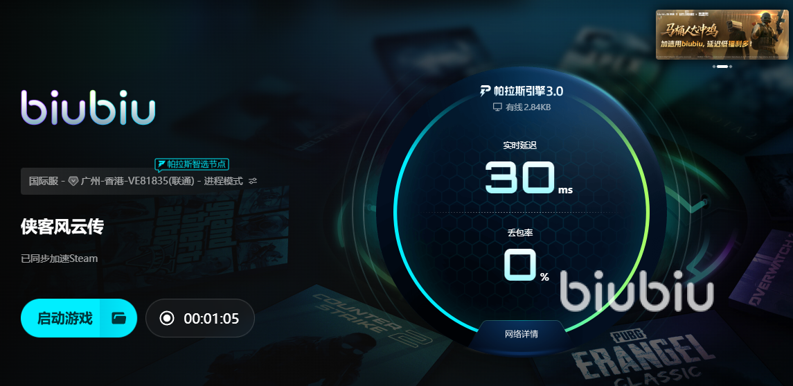 biubiu近期可是完成了重磅升级,邀请XDD担任产品体验官,致力于为玩家打造更优质的加速感受,其全新推出的帕拉斯引擎3.0,凭借强大的赛事级加速能力,确保玩家在长时间的游戏过程中网络稳定,告别卡顿与掉帧烦恼。