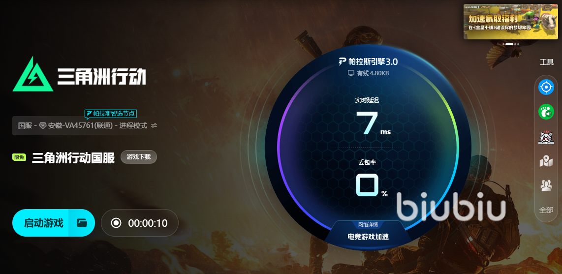 值得一提的是,该游戏的表现出色,如果能结合biubiu来稳定也会让体验更加突出,其近期迎来了重磅升级,并且也是有为广大玩家邀请到XDD作为产品的体验官,让小伙伴们可以去更好的感受其带来的电竞级加速效果,更是有着帕拉斯引擎3.0,能进一步去确保玩家网络线路方面的稳定,对于掉帧、网络波动等方面问题带来的影响,也能很好的去解决。