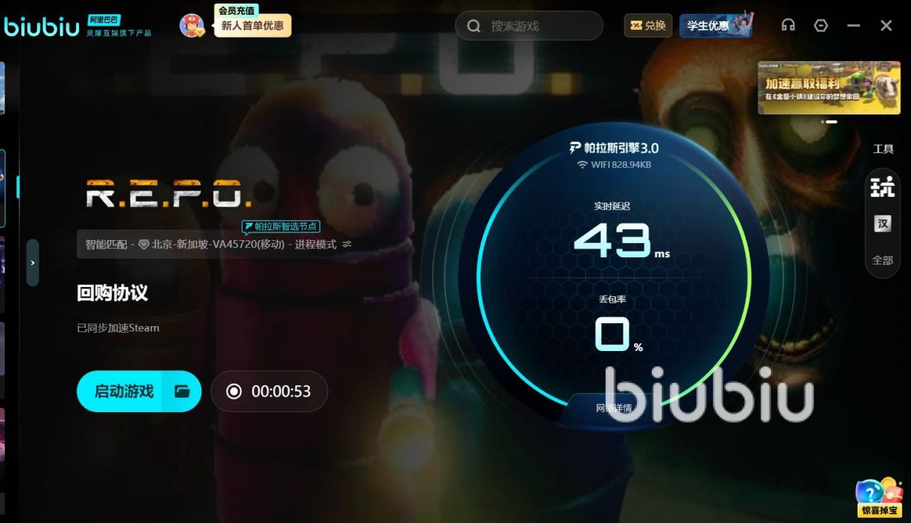 该领的福利绝不能错过,新用户注册biubiu加速器后,可获得专属服务时间24小时,此外,使用口令【biubiu不掉线】继续使用顶级网络服务72小时,这样一来,新手总共拥有96小时免费试用,足以测试REPO的游戏优化效果。