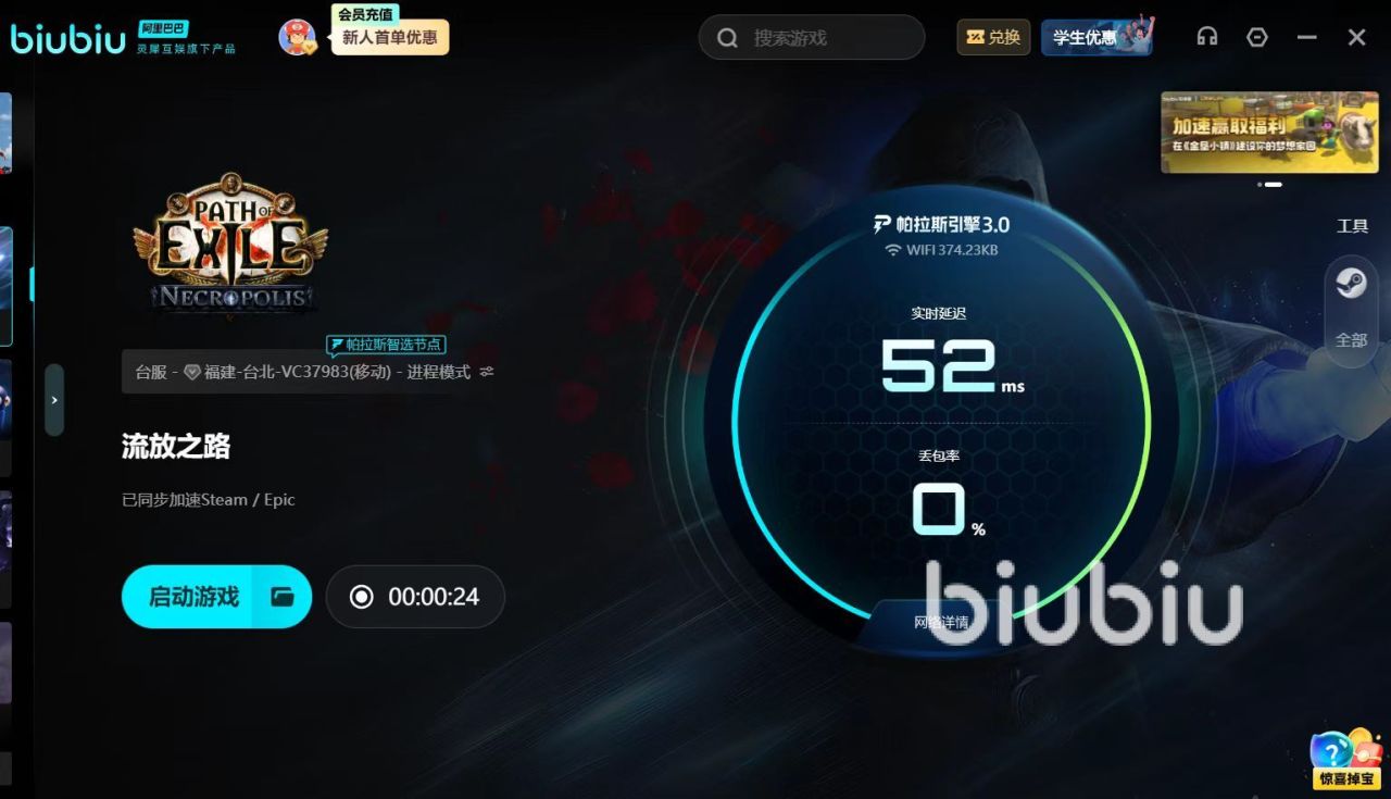 以上是关于流放之路延迟和丢包应对方法的介绍,在这个既具有挑战性又深具策略性的游戏世界中,一次网络延迟可能会影响玩家辛苦准备的角色构建和珍贵的战利品,biubiu加速器采用了先进的帕拉斯引擎3.0,凭借智能通道、毫秒切换和战斗优先三大核心技术,帮助玩家摆脱延迟和丢包的困扰。