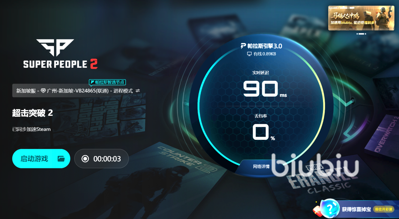 超击突破2是一款讲究突破极限的游戏,真正的突破不是通关难关,而是你能顺利迈出第一步。使用biubiu加速器,不是为了获得额外优势,而是为了拿回你进入世界的权利。当连接稳定,你不再被拒之门外,游戏的大门会为你打开,而真正的突破,从这一次顺利进入开始。