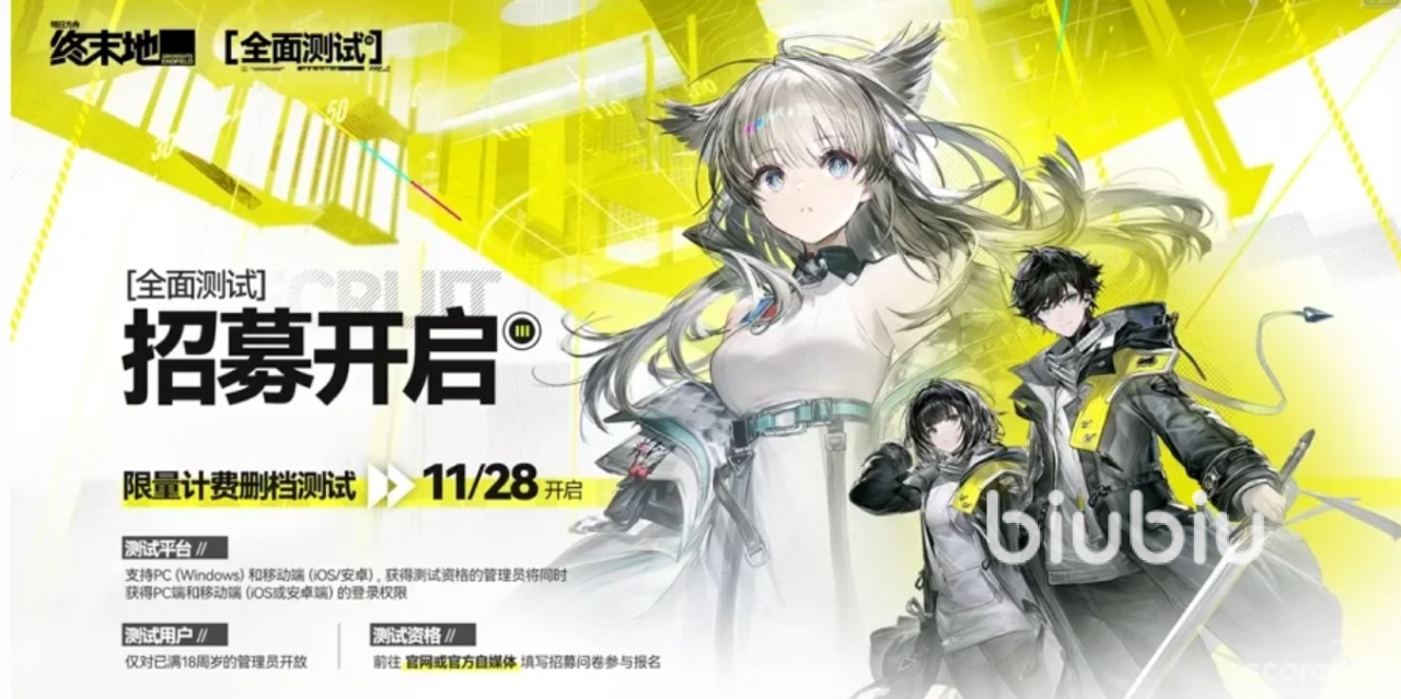 明日方舟终末地全面测试将于2025年11月28日正式开启,支持PC和移动端(iOS/安卓)同步进行。此次测试为限量删档计费测试,玩家需通过官网填写问卷进行报名,报名通道自2025年10月31日起已开放。在测试期间,将开启付费功能,并推出新剧情章节、新干员以及工业系统等核心内容,为玩家提供更加丰富的游戏体验。