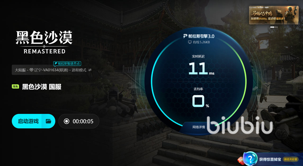 《黑色沙漠》的魅力不在于胜负输赢,而在于沉浸于这个世界的每一刻。解决黑屏问题的目的,并非提升帧率表现,而是确保你能真正进入并存在于这个虚拟大陆。当网络稳定,你的角色才能真正“苏醒”,你的旅程才得以真实开启。使用biubiu加速器,正是为了重建你与这片土地之间的连接,推开命运之门,而非长久面对一片漆黑的屏幕空等。