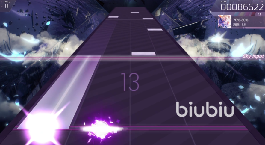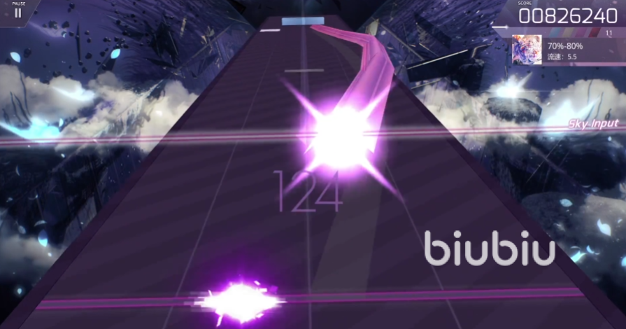 无论是双压还是交互配置,在她的谱面中均有广泛应用。进入9级及以上难度后,常出现包含两段慢速流速的关卡,且流速通常维持在原速50%以上,这为玩家提供了短暂的操作缓冲期。但在第二段慢速期间,天地交互配置密集,读谱压力明显增加。对于习惯高速谱面的玩家来说,白魔王的低雾量加持机制使得整体容错率偏低,若未充分掌握其操作逻辑,挑战过程将较为困难。