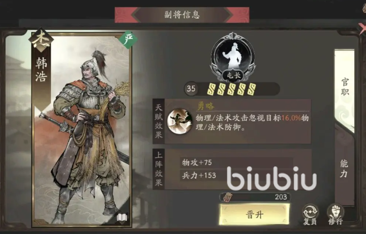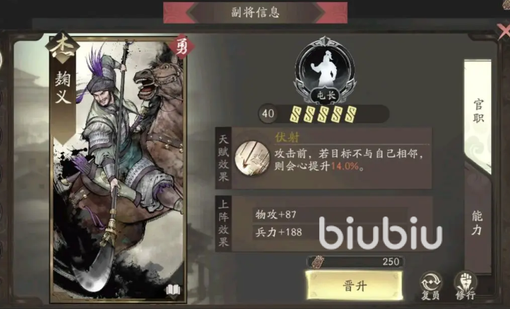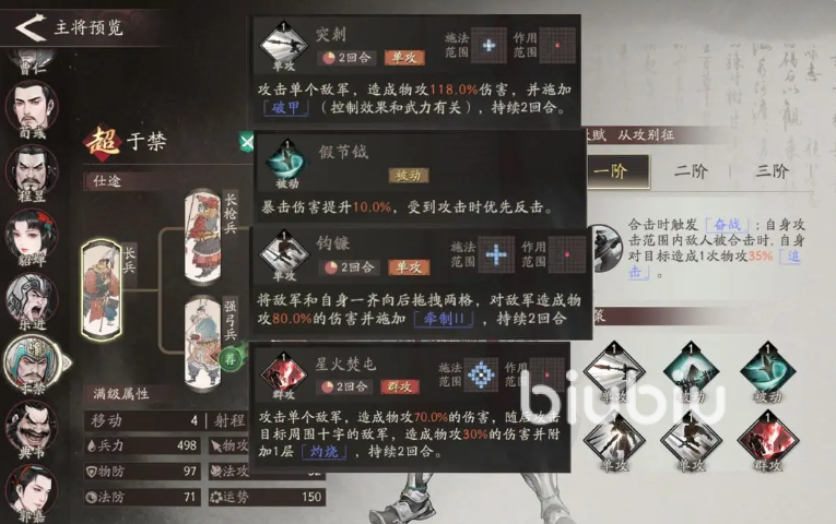 考虑到于禁通常定位为弓兵系远程输出角色,其成长属性高度依赖暴击率与会心伤害加成。因此在装备选择方面,应优先考虑提升物理攻击与暴击属性的套装,以契合其后期技能爆发特点。副将搭配推荐韩浩或麹义——前者拥有破甲能力,有助于打出接近真实伤害的效果;后者则能在高暴击状态下进一步提升伤害倍率。