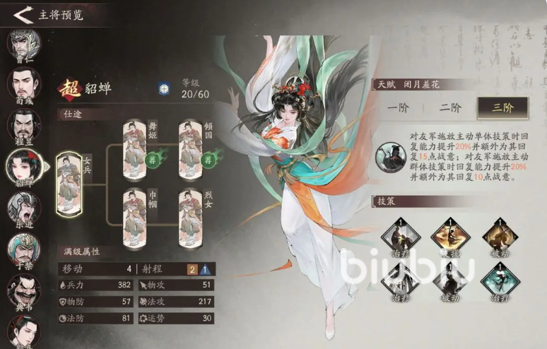 作为一名弓骑兵武将,吕玲绮拥有较强的近战能力和灵活的走位优势。在进阶路径上,推荐优先完成鸾骑进阶以进一步强化其战场表现。技能选择方面,建议配置“御风”或“奔袭”类加速型战法,有效提升她的位移频率,从而更快地触发被动叠加效果。若构建专属阵容,可尝试围绕女性武将打造协同体系,例如搭配貂蝉与甘梅组成女将联动队。