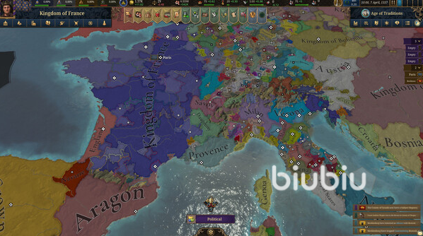 游戏背景设定在波澜壮阔的1337年至1837年,玩家将通过精密的外交手腕、铁血的军事征服、繁荣的贸易网络以及深谋远虑的治国方略,亲手引导你的国家走向强盛或衰落。其描绘的地理版图包含超过3万个可精细操控的地理行政区域,囊括历史上曾闪耀或存续的2103个国家势力。本作引入突破性的人口模拟系统,动态追踪并计算着地图上拟真的4.2亿人口个体行为。他们操持着450种不同语言,传承着1952种各具特质的地域文化,遵循300种以上形态各异的宗教信仰体系,并在74种截然不同的政治体制框架下生存、迁徙与互动,共同构建无比动态而真实的历史变迁过程。