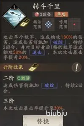 即便双线技能均可解锁,初期也仅能激活两个技能槽,因此不建议全部配置为被动。推荐开局使用清兵类技能打开节奏,随后在骑兵体系下搭配“转斗千里”,进一步放大其高速移动带来的战术优势。该技能可辅助夏侯渊在战场中灵活调整站位,实施精准追击,从而最大化输出窗口。