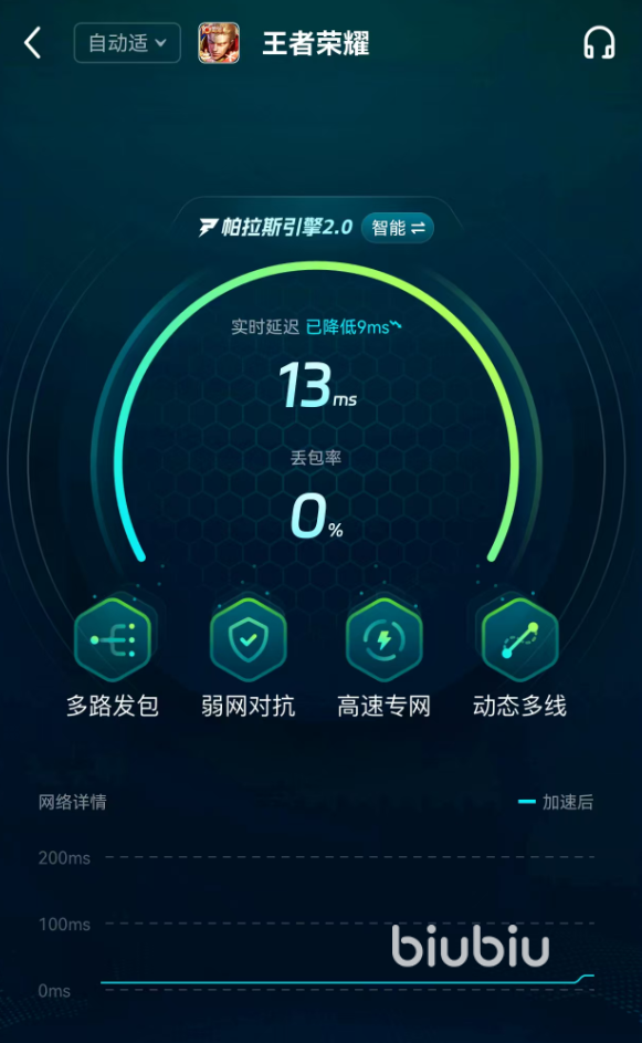 就用王者荣耀来举例,这算是国民手游了,玩家可进行5v5团战,完成对线发育期,抓人刷经济,购买装备,利用高超操作打团,推掉敌方水晶,拿下胜利。可是网差,卡顿了,就会让操作失误,输掉团战。biubiu是能帮助大家排忧解难的好工具,大家可以试试看。