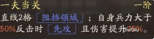 他在战斗初期便具备极强的反击触发能力,配合群体嘲讽机制,能够有效吸引敌方火力并造成可观的范围伤害。其天赋技能“一夫当关”可在前方直线方向形成双格阻挡区域,只要兵力保持在50%以上,就能稳定激活反击效果。走反击路线时,他的整体强度极为突出,伤害加成最高可达75%。该阻挡区域使敌人无法通行,在战棋类布局中具有极强的战略压制力,同时还能实现先手攻击并触发反制输出。