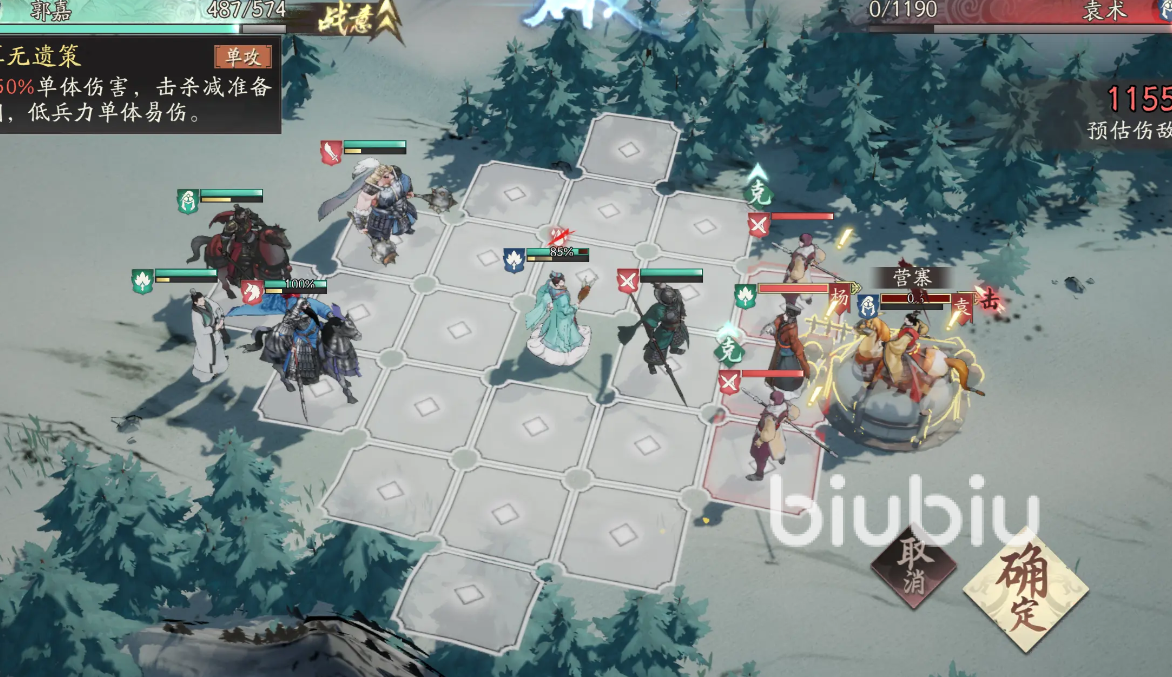当吕布生命值降至30%以下时,他会主动撤退并进入第二阶段狂暴形态。此时可启用“全军出击”奇谋效果,由前排角色将其封锁在阵型最前端,配合夏侯惇的“横扫千军”与郭嘉的“法术破甲”,实现精准斩杀。