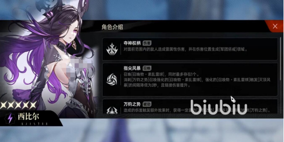 首推五星角色西比尔,定位为雷元素主攻手,能够在队伍中承担核心输出职责。其技能机制融合了召唤物协同作战与高频范围伤害,具备极强的战场压制力。标志性技能“夺神权柄”配合“指尖风暴”及终结技,可迅速打乱敌方行动节奏,并触发大范围雷电连锁攻击。无论清理杂兵还是应对高血量精英目标,西比尔均能稳定输出高额伤害。该角色成长曲线平滑,前期即可展现强大战斗力,资源消耗低,无需复杂装备搭配即可发挥全部潜力,非常适合新手玩家作为开荒主力进行培养。