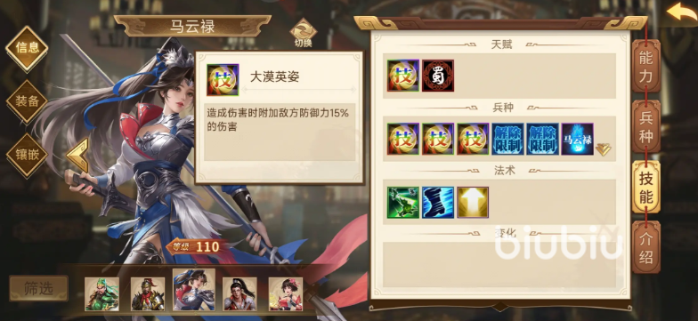 马云禄的核心价值在于其被动技能可提升全队普通攻击伤害,配合兵书解锁后还能让自身及队友在普攻时额外触发一次追击,形成连续打击节奏。因此,她非常适合担任骑兵队的进攻中枢。对于新手而言,最稳妥的开局组合是马云禄、赵云与马超。三人同为骑兵单位,能激活完整的兵种加成,避免跨兵种出战带来的属性损失,同时赵云提供移速加成,马超具备高爆发追击能力,完美契合马云禄的机制。