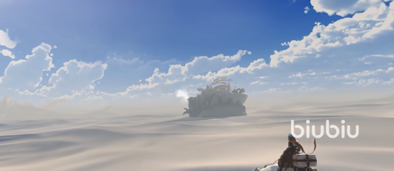游戏开场动画揭示了一个震撼场景:一头年逾百岁的巨兽含泪沉入白沙,其背上的完整人类建筑随之消逝。这一画面不仅渲染了世界的苍凉感,也预示了新的旅程即将开启。在这样的环境中,小型载具如海巡兽的作用愈发凸显。