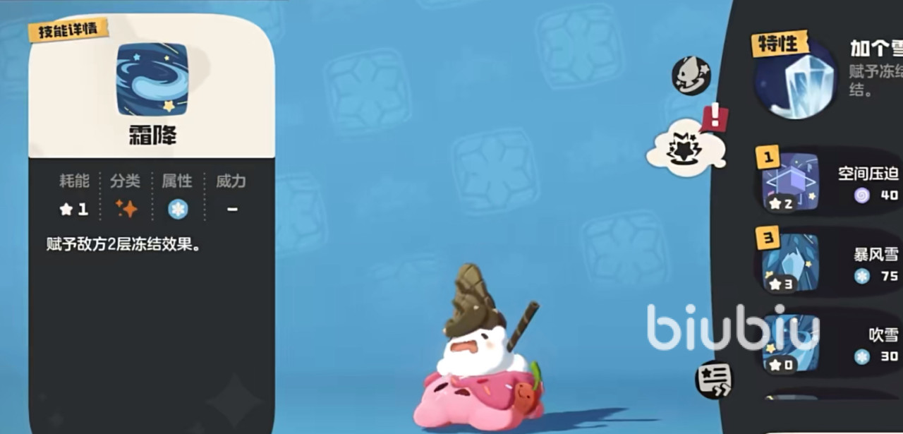 第一种为冰淇淋陷阱组合,核心成员包括圣代甜甜、冰钻布鲁斯与霜天。战斗开始阶段由圣代甜甜先行出手,利用技能触发“加个雪球”,使目标叠加三层以上冰冻状态,实现一回合内高效冻结。随后切换至霜天,进一步提高敌方行动所需的能量消耗。当对手处于冻结无法换宠时,派出冰钻布鲁斯,依靠其霜冻特性稳定控场,并通过龙之舞逐步提升自身能力等级,配合贪婪吸血技能维持生命值,最终完成强力收割。