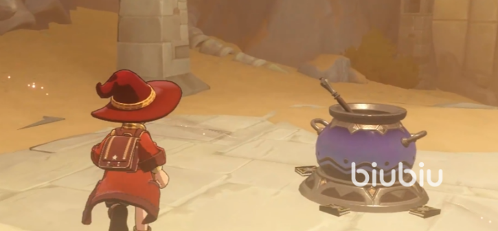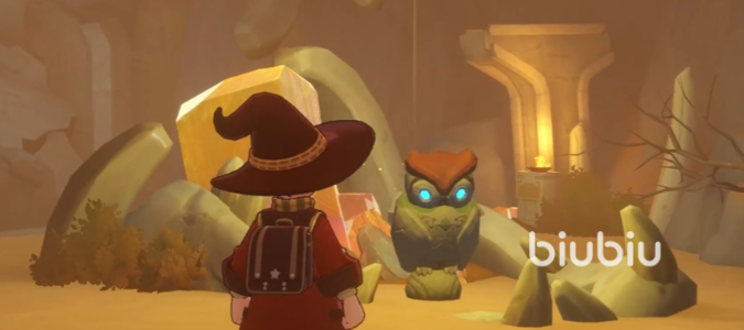 接下来前往紫色锅的右侧区域,这里同样设有两道石墙。先摧毁第一道墙,进入内部后会发现一只猫头鹰。切换至星光魔法对它进行攻击,触发机制使其转身,随后第二只猫头鹰显现,同样用星光魔法击败。完成攻击后回头,第三只猫头鹰将出现在身后,将其打败即可解锁最深处的空间。在此处可以找到一个华丽宝箱,开启后获得第一块矿石晶块。