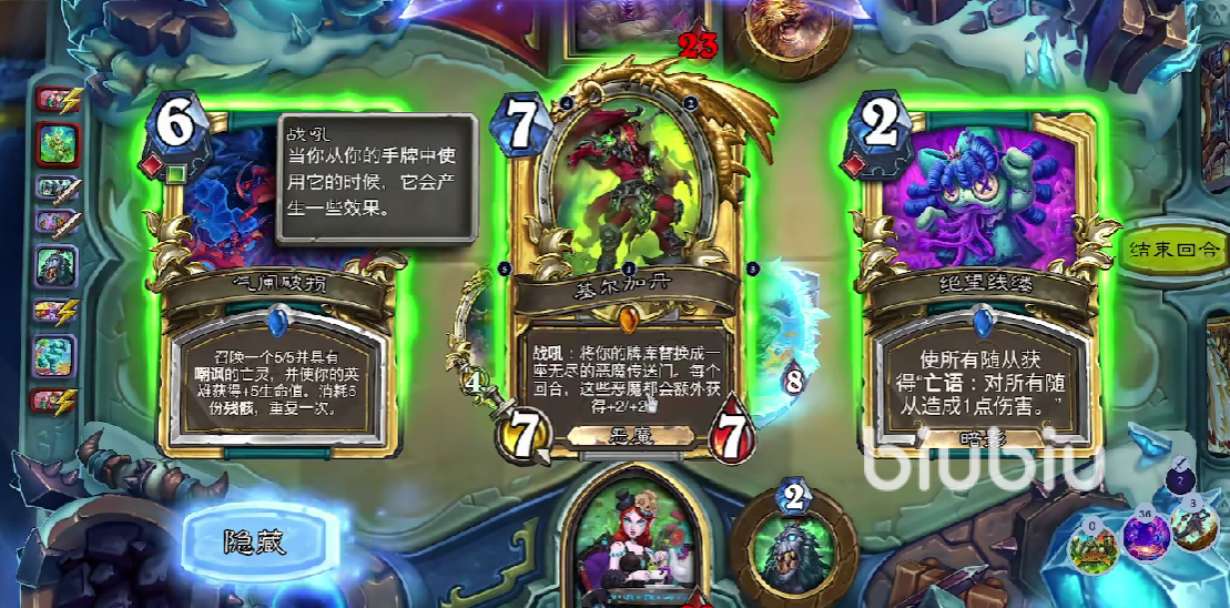 此外,死亡骑士还拥有“尸体”资源系统。每当己方任意随从死亡时,玩家即可获得一具尸体,这些尸体可用于强化特定卡牌,提升整体战术灵活性与爆发能力。