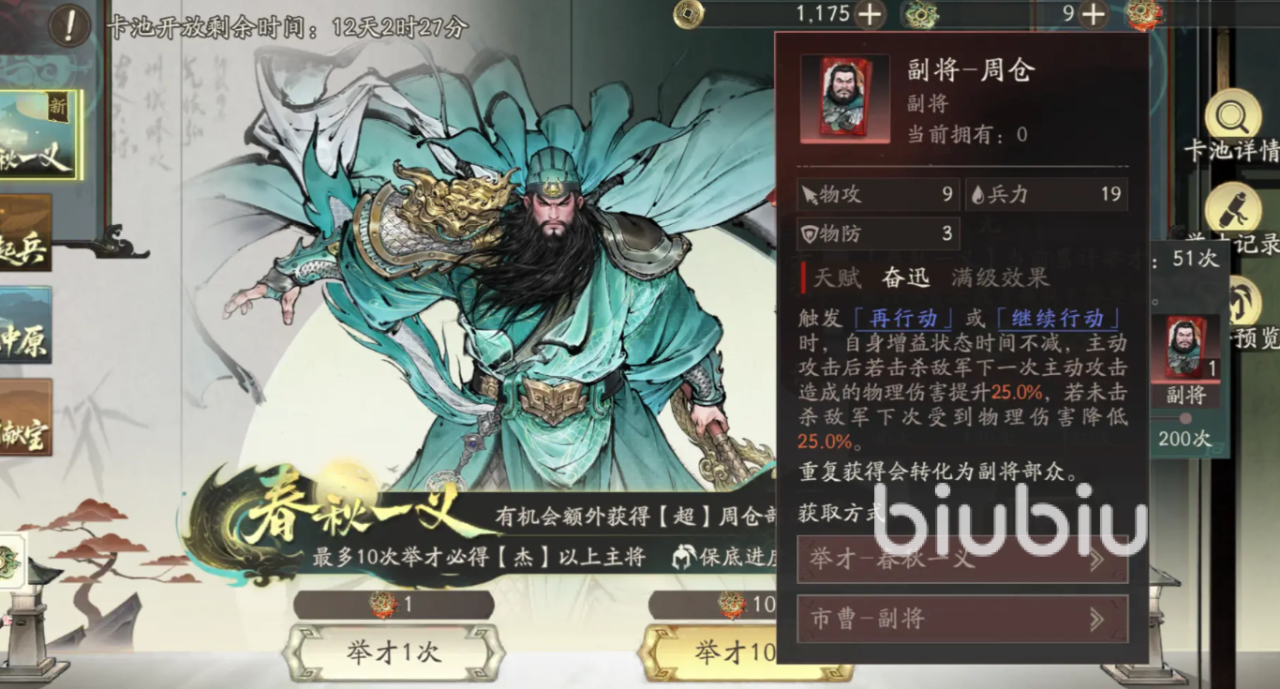 第一种方式是通过完成全局任务获得绿色品质的周仓,但此版本的角色基础属性较低,实战表现有限。