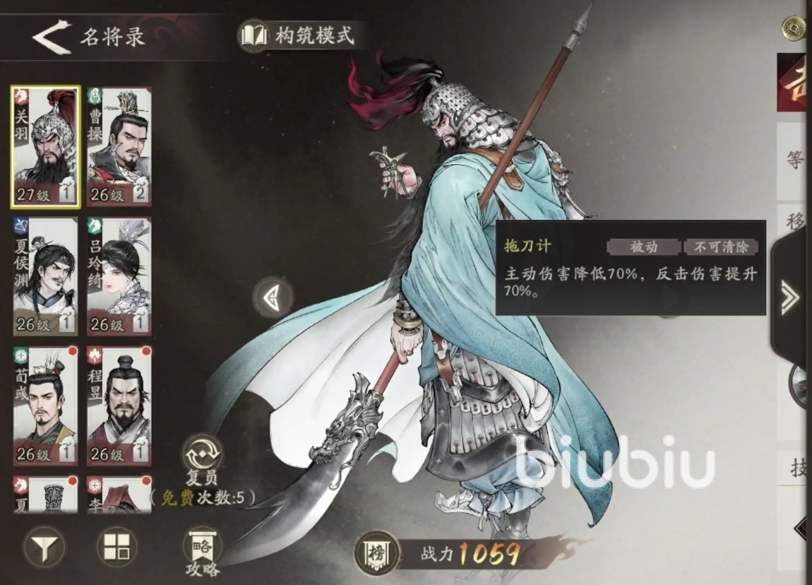 在游戏中,关羽拥有独特的行动机制:每次主动攻击后可触发额外技能效果并再次行动。若攻击未能击杀目标,则进入“拖刀机”状态,有效降低自身主动技能的冷却时间,同时提升反击伤害。而当成功斩杀敌方单位时,将积攒一层“武魂”,每层可提供5%的伤害加成,最多叠加两层,显著增强后续输出能力。