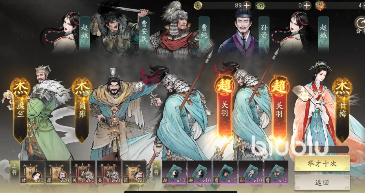 游戏中设有“群雄逐鹿”专属商店,玩家可用特定货币在其中兑换奇谋、举才招和举才玉等战略资源。新注册用户首次进入招募界面,还可立即获得十连抽机会,大幅提升获取优质武将的概率。