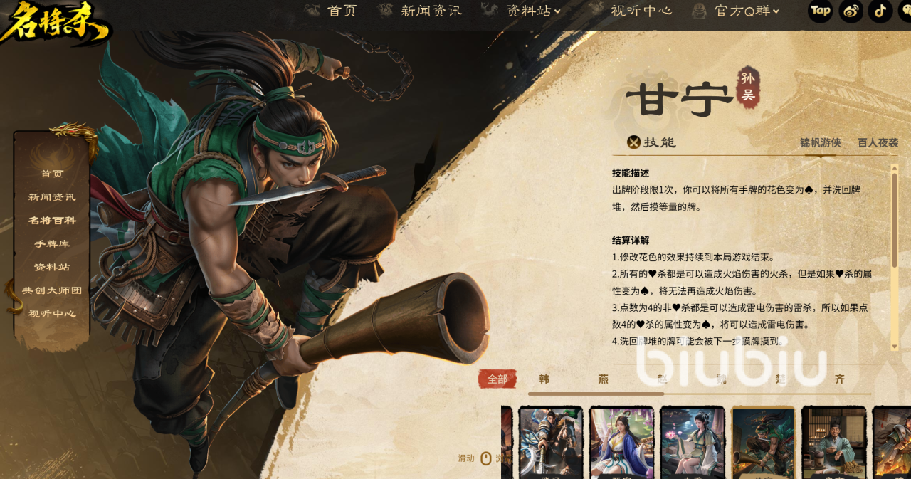 综上所述,甘宁虽仅配备一项主动技能,但其内在机制高度复杂,集花色操控、属性转换与牌堆循环三大要素于一体,极大增强了操作的可控性与战术深度。对于擅长布局的玩家而言,甘宁是扭转战局的关键棋子;而对于缺乏策略意识的使用者来说,该技能则可能带来反向效果。因此,甘宁不仅是《名将杀》中典型的爆发型武将,更是检验玩家战略思维的试金石。掌握这一技能的精髓,便能在千军万马之中挥展锦帆,独领风骚。