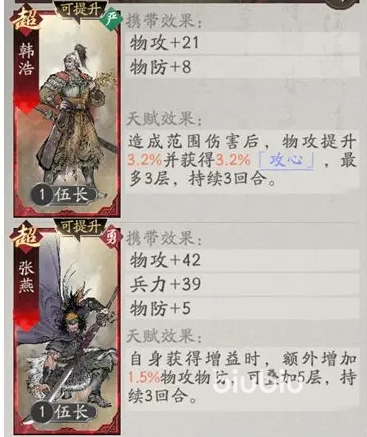 职业路线除常规战车外,突骑兵路线在特定战术配置中也具备出色表现。车旋路线拥有较高移动力,攻击范围为十字格,适合高速推进与机动拉扯,搭配骑兵单位可实现边打边退、反手激战的战术效果;占地路线则侧重阵地固守,具备环绕一圈的攻击范围,利于稳定触发天赋效果与副将联动。副将搭配上应避免单纯堆叠基础属性,转而追求与主将的协同效应最大化,如韩浩、张燕等均可显著提升团队整体作战效能。