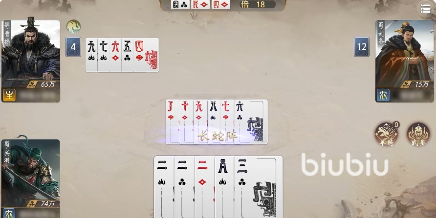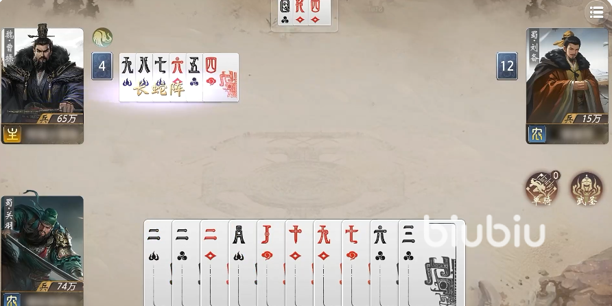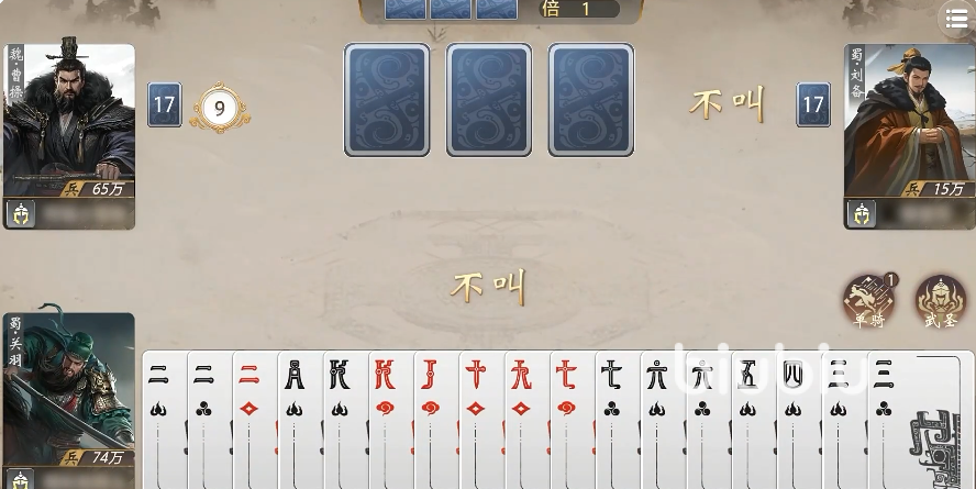 尽管基础规则易于掌握——即率先清空手牌者胜出,但游戏中引入了多位经典三国武将,每位角色均配备独特的主动或被动技能。这些技能可在关键时刻调整手牌结构或干扰对手节奏。例如郭嘉的“遗迹”技能,允许其直接抽取敌方一张手牌;黄忠的“穿杨”配合关羽的“武圣”,能更高效地组成顺子序列,提升出牌效率;