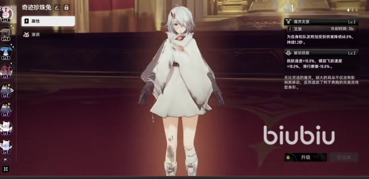 总体来看,珍珠兔魔灵偏向于生存与机动辅助,并不具备攻击类属性加成,在PVP对战中出场率较低。它的核心价值主要体现在前期流程中,适用于需要频繁跑图、破解机关或挑战复杂地形的场景。建议新人玩家将其作为过渡期使用,待后期获得更强输出型魔灵后,可根据阵容需求进行替换培养。