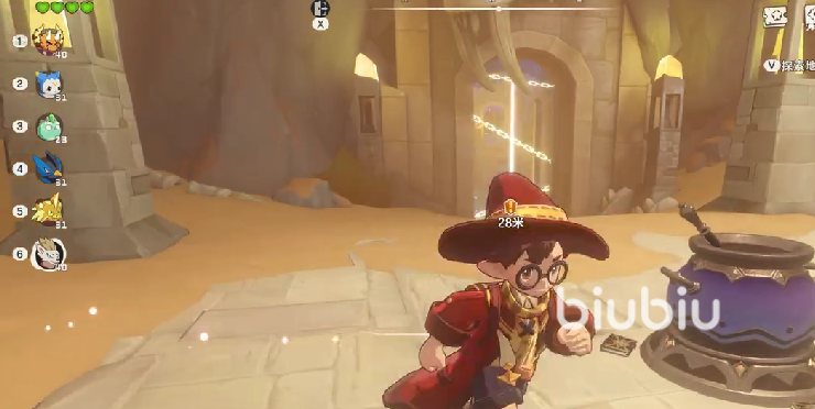 想要顺利推进任务进度,首先需要进入地宫并破解机关。初始阶段,玩家需前往紫色大锅所在区域,此处提示显示,必须通过三块矿石金块炼制才能激活后续机关。在角色左侧存在多处石墙障碍,使用携带的精灵进行撞击即可将其破坏。突破第一道墙后,会出现一个小型星星道具,拾取后继续击碎第二面墙。过程中会发现一个宝箱,可从中获取奖励,并留意周围地面是否有隐藏物品。此外,在左侧区域还可找到旧游戏币,收集完毕后原路返回,继续破除前方石壁,随后转向紫锅右侧,清除挡路的石墙结构。